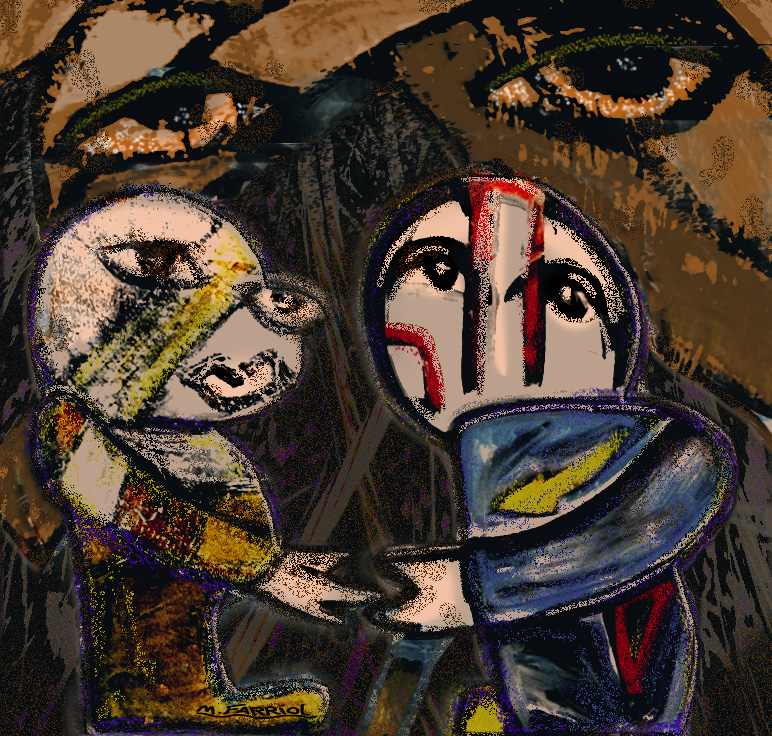 Hacer y Rehacer… El reciclaje inesperado. Miguel Farriol Vidal (Barcelona, 1950) estudió, fotografía y diseño, en dos de las más prestigiosas Escuelas de Arte Catalanas, Massana y Elisava, se forjó como dibujante en el círculo artístico y underground de los tebeos y álbumes de la Barcelona disidente al franquismo entre los setenta y los ochenta, junto a su hermano: José Farriol, Javier Mariscal y Nazario entre otros. Compartieron intereses y un piso en la calle Comercio de Barcelona, editando sus propios tebeos y distribuyéndolos ellos mismos. Los monográficos más destacados en los que participó fueron: El Rrollo Enmascarado, Catalina, Purita y Nasti de Plasti. En aquel momento, Miguel Farriol fue juzgado por varios de los tebeos subversivos en los que participó y este es el motivo por el que, a mediados de los setenta, se instala en Ibiza, en la Casa Can Americano, junto a algunos compañeros. Fue en Ibiza donde saltó del dibujo a la pintura. Una primera exhibición colectiva en la Galería Berri, en 1985. Al año siguiente, inauguró su primera exposición individual “Con el dedo en la llaga” en la sala de Caixa Postal. Destacamos la exposición colectiva Secuencias también en 1986, con motivo del aniversario de la muerte de García Lorca, en la sala de Sa Nostra.